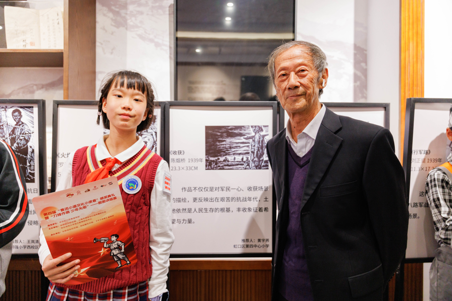 “作为一名小学生,能用新技术让近百年前的老作品焕发新生,这值得鼓励。”陈伟南是上海交通大学设计学院教授,他也给黄宇荞看了一部“学生作品”——其子在德国魏玛包豪斯大学攻读设计专业研究生,不久前创作了一部AI动画短片,用3分钟时间讲述了上世纪30年代新兴木刻运动在国内的兴起、发展、社会影响。他鼓励黄宇荞再接再厉,用新技术创作出更多作品,用青少年的方式讲好红色故事。这场“邂逅”让黄宇荞很是感慨:“历史和艺术就是这样一代代传递下来,我们每个人都是其中一环。”