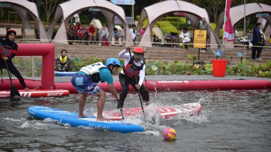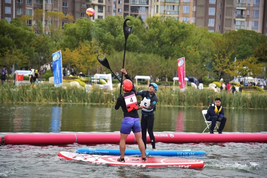 作为上海首次承办的国家级桨板球赛事,活动吸引来自全国各地的16支精英队伍、150余名选手参与角逐。选手们脚踩桨板,手持球桨,在高速移动中运球、传接、射门,攻防转换瞬息万变,战术配合行云流水。